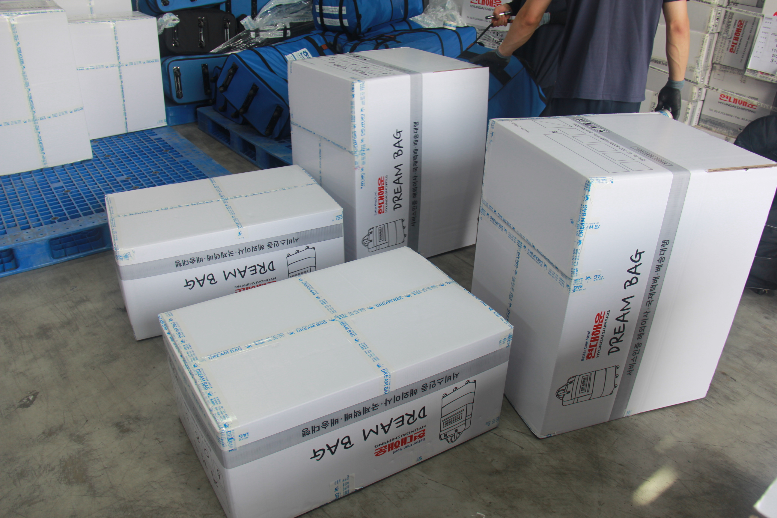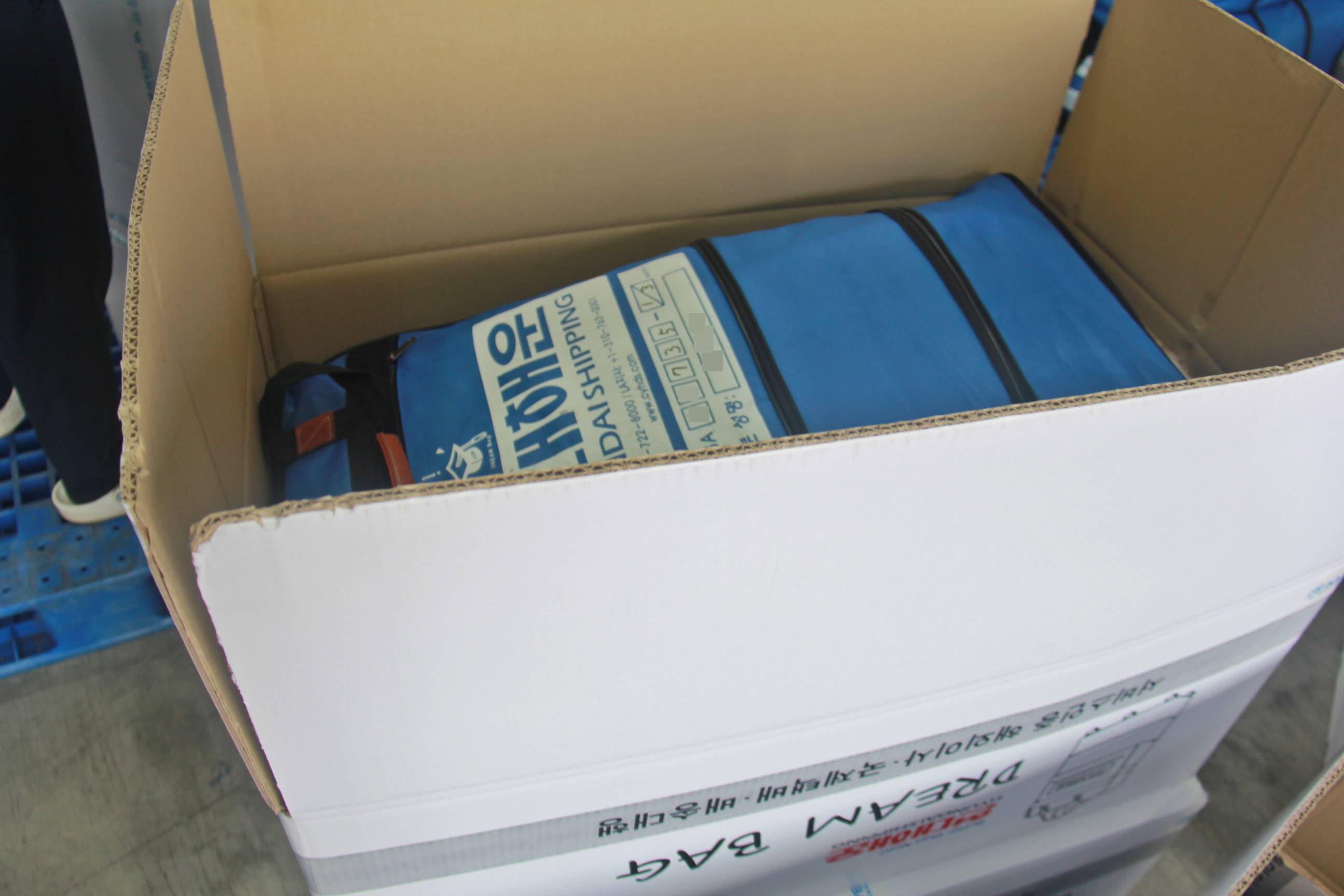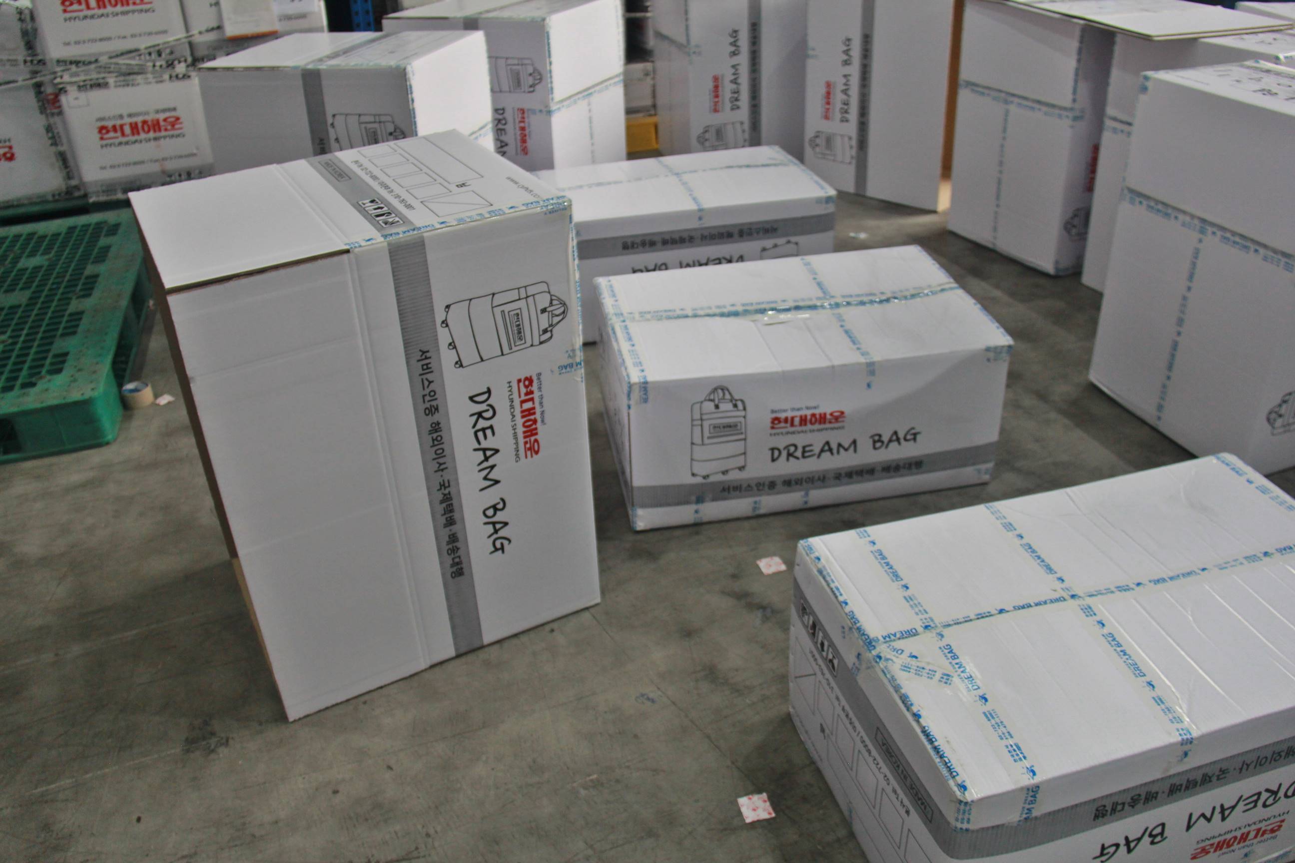 드림백 이민가방 통째로 컬러강화박스로 무료 재포장 처리되어