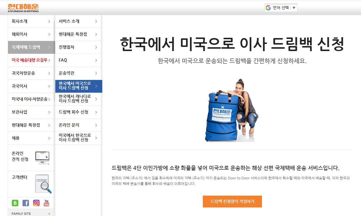 그렇다면, 현대해운 미국 선편 국제택배 드림백은 어떨까요?