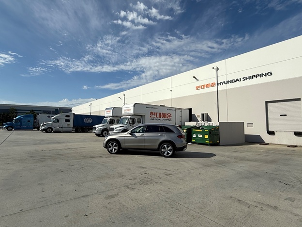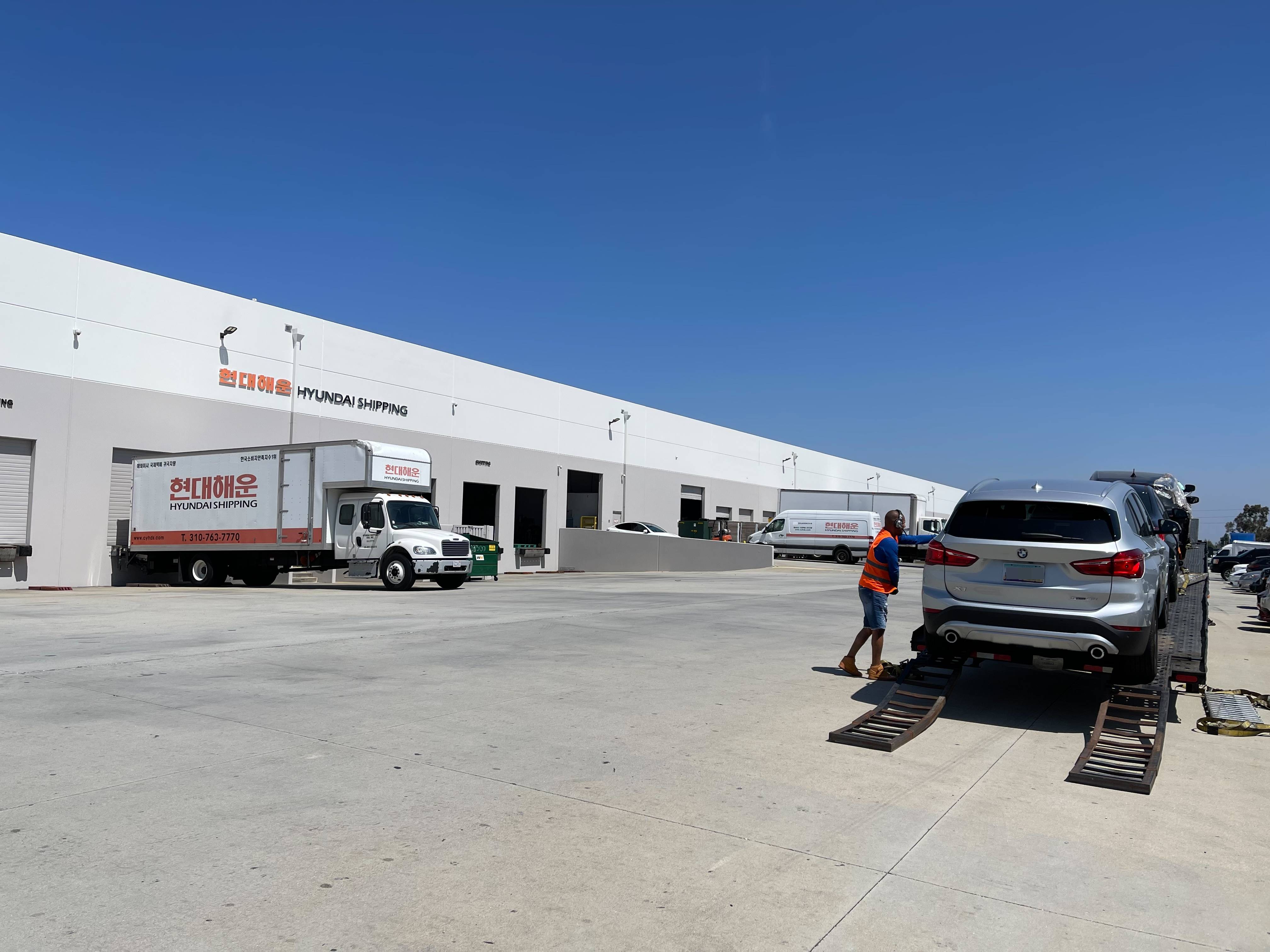 (현대해운 LA 전경, 물류창고 야드에서 차 넘겨주면서 한컷 )